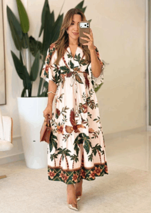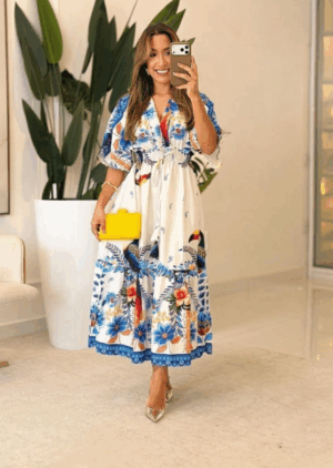 Elegância, conforto e modéstia em uma só peça. O nosso Vestido Inspiração Farm traz toda a leveza e o estilo vibrante que você busca, unindo o toque texturizado e sofisticado do tecido Salinas a um caimento que valoriza sua feminilidade com discrição.